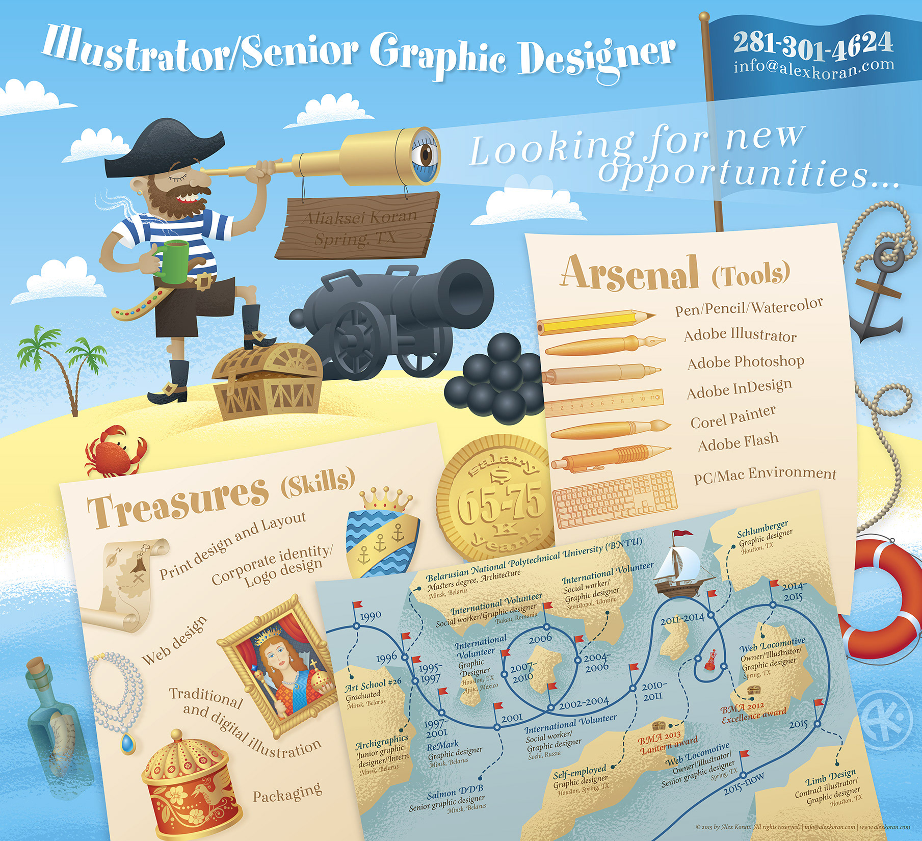 Self-promotion piece, done to show my skills in illustration, and to use it as a resume infographic.