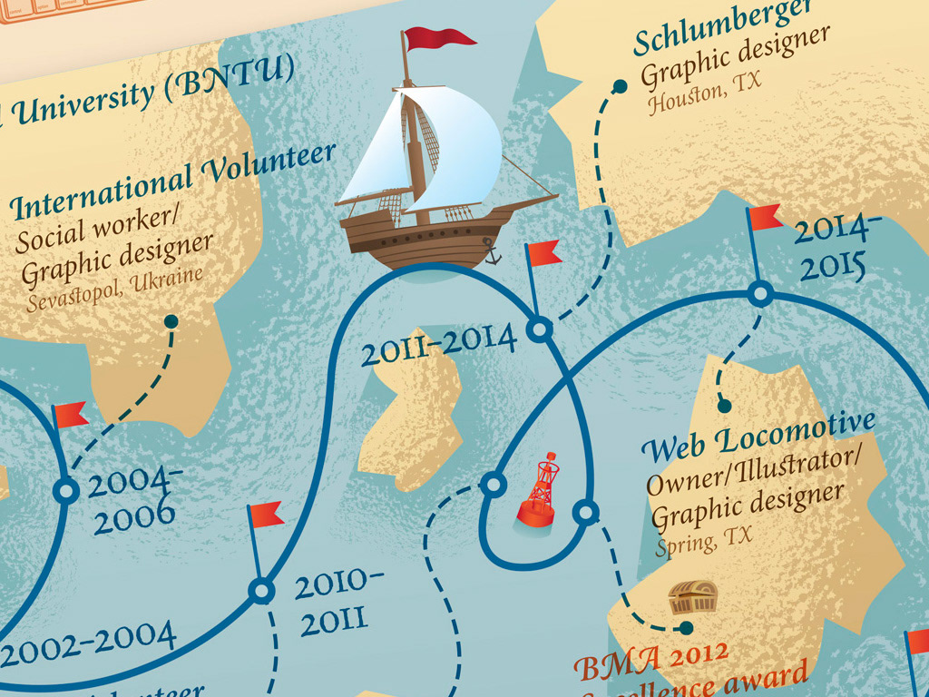 Self-promotion piece, resume-infographic. Adobe Illustrator.